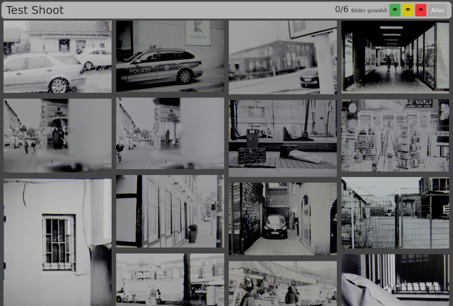 Using the filter buttons in the top right, you can filter by Keep/Insecure/Don't keep and unrated images. Images with a green border are being kept, images with a red border not, images with a yellow border are insecure.